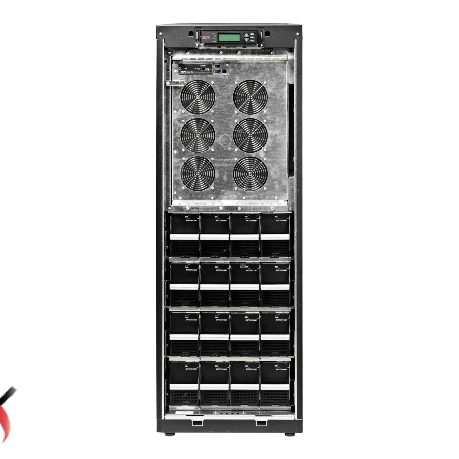 این یو پی اس با طراحی ماژولار و باتریهای قابل تعویض داغ (Hot-Swappable)، امکان افزایش زمان بکاپ با افزودن ماژولهای باتری را فراهم میکند. ویژگیهایی مانند ورودی دوگانه (Dual Mains Input) برای اتصال به دو منبع برق، قابلیت موازیسازی (Parallel Capability) برای افزایش ظرفیت یا افزونگی، و شارژ هوشمند باتری با جبران دما، عمر باتری را بهینه میکند. نمایشگر الفبایی-عددی (LCD) و آلارمهای صوتی، وضعیت سیستم را بهصورت لحظهای نشان میدهند و مدیریت از راه دور از طریق کارت شبکه (Network Management Card) امکانپذیر است. این دستگاه با دمای عملیاتی 0 تا 40 درجه سانتیگراد و ابعاد تقریبی 149 × 52 × 81 سانتیمتر، برای نصب در رک یا بهصورت ایستاده مناسب است.