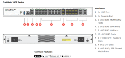 - یکپارچگی کامل با اکوسیستم Fortinet (FortiSwitch, FortiAP, FortiClient, FortiManager, FortiAnalyzer)